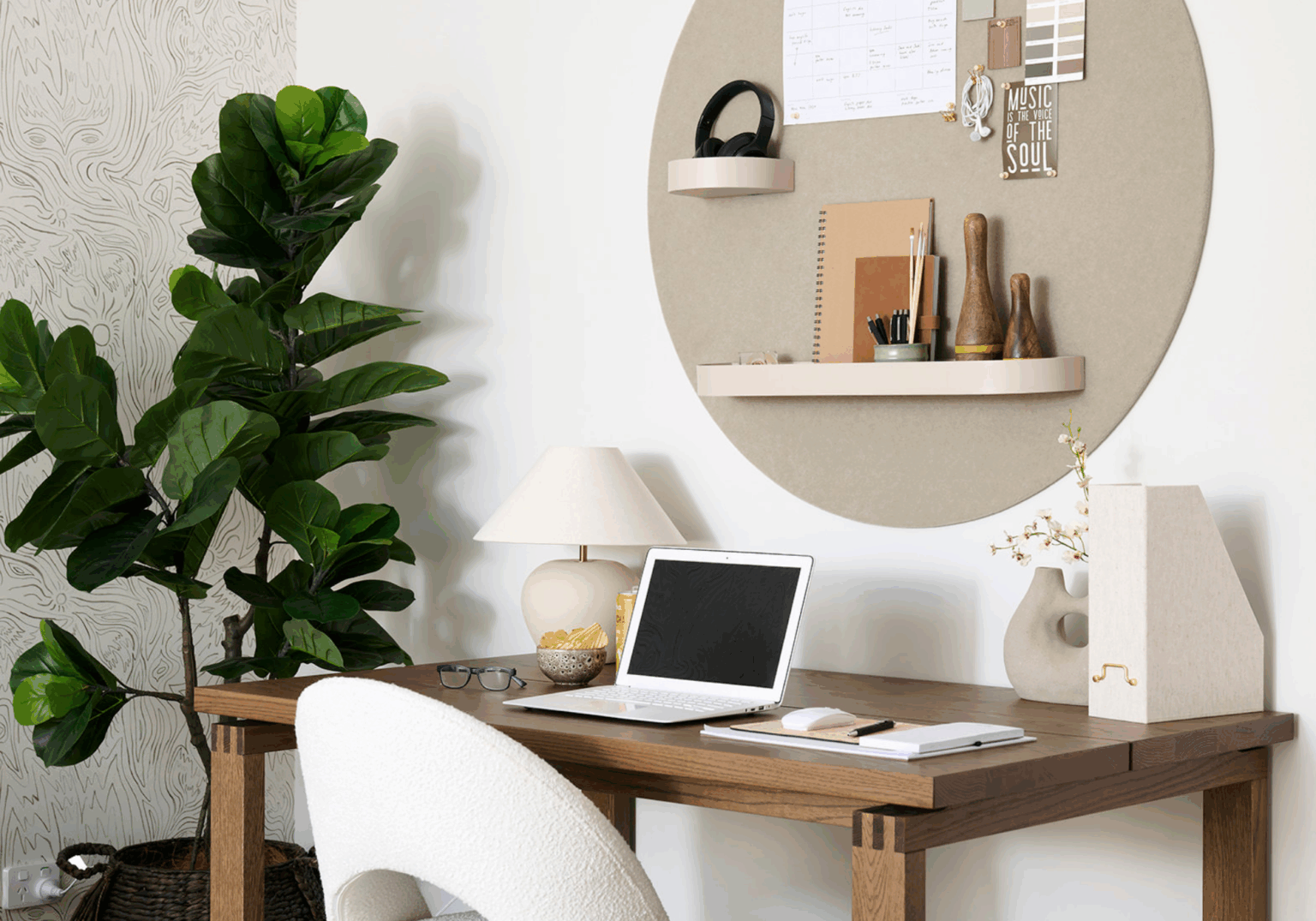 Start with plants and greenery. Indoor plants instantly add freshness and a sense of calm, while outdoor planting visible from inside helps strengthen the connection to nature. Introduce timber and natural decor through furniture, shelving, stools, bowls or sculptural pieces to add warmth and texture. Layer in organic materials like linen, clay, stone and woven textures to create depth and visual interest. If you have an outdoor area, consider simple water elements, such as a small garden fountain, to bring movement and a soothing sound into your space.